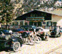 A little over an hour later, after an unsuccessful attempt to find a place to gas up my XR, we pulled into a nearly empty parking lot along side 285 in Grant, CO. A couple of empty bike trailers, a van/trailer combo with a modified Suzuki PE and a Honda XR400, a truck/trailer with two 4-wheelers and a pickup with a Yamaha TT500 aboard were all in the parking area. Another collection of bikes was parked in front of the restaurant next door includings a early 70s Honda CB750K, a Yamaha Venture with snow mobile cleats on the tires and a Honda Transalp with California plates and lots of camping gear strapped on.
