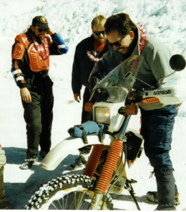 More general craziness took place with various attempts to climb the snow banks. While all this was going on, Lazslo Nemeth arrived on his R-100. Undoubtably the largest bike to make the top without the aid of traction devices.