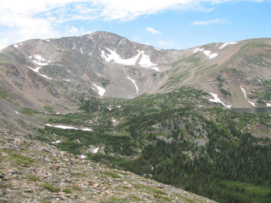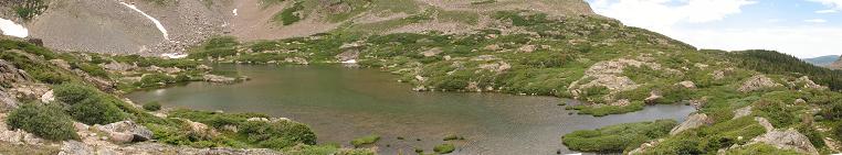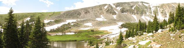 22) Crater Lake, CO - June 28, 2009 - On a spectacular summer day, our friend Sabrina joined the hiking crew for a trip up to the East Portal trailhead. We decided to try a new trail: the Crater Lake spur off the Heart Lake trail. We climbed up to the main lake and enjoyed lunch on a lake-side rock before heading back down. The total was about five miles round trip with about 1400 foot of elevation gain.
