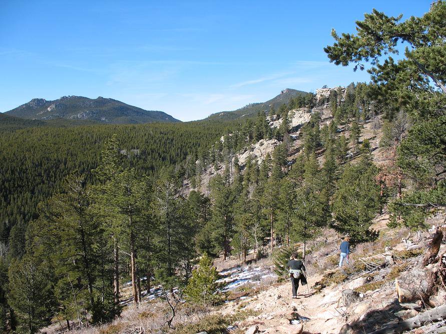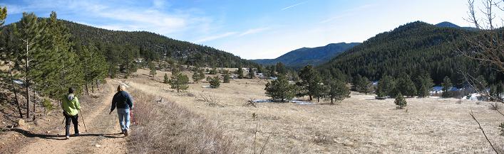 12) Ceran St Vrain, CO - March 14, 2009 - On a beautiful sunny spring day, our hiking gang went out to find a trail devoid of snow and mud. We found partial success with a short hike on the Ceran St Vrain trail. We had a pleasant 5 mile hike and even saw a moose cross the trail near our turn-around point.