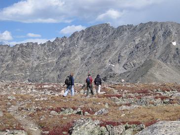 29) Arapahoe Pass, CO - September 13, 2009 - On a crisp Fall day, the hiking crew headed up to the Fourth of July trailhead to try out luck on this notoriously crowded trail system. We lucked out and found the cool weather and intermittent clouds kept the crowds away. We had a nice hike up to Arapahoe Pass and then on up to Dorothy Lake. A little hail at the lake and then some rain for the last 1/4 mile but otherwise great hiking weather. 6 1/2 miles round trip with 2,000 ft of elevation.