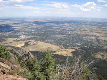 30) Bear Peak and South Boulder Peak, CO - September 20, 2009 - For the last day of summer, Lyle and Alan down to Boulder to hike Bear Mountain. We made it a 2-for-1 by doing both Bear Peak and South Boulder Peak. It was sunny but windy. The wind blew all the smog and clouds away, which made for beautiful clear views down onto Boulder. The hike was around 10 miles in length, by going up Fern Canyon but down Shadow Canyon, with about 2,500 ft of elevation gain.