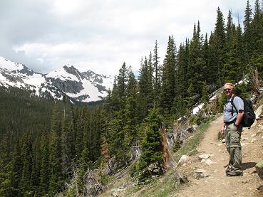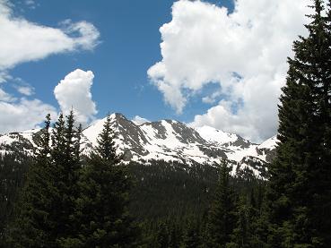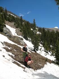 21) Diamond Lakes trail, CO - May 31, 2009 - The crew got together with the optimistic goal of hiking up to Diamond Lake, just off the Arapahoe Pass trail. It was a beautiful sunny day, perfect for hiking, but we underestimated how much snow was still up in the high country. We only made it about a mile and a half up the trail before big snow banks and an unmarked trail turned us back. Still, a nice (if short) hike with great views of the snow covered mountains.