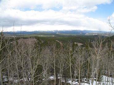 15) Caribou, CO - April 11, 2009 - A combination of low energy, questionable weather and unknown trail conditions had the hiking crew opting for a short hike. We headed to Caribou, thinking wind may have blown the recent snow off the mountain top but found mixed trail conditions and overcast skies. However, crusty snow meant we did the three mile loop as a hike, no snow shoes necessary.