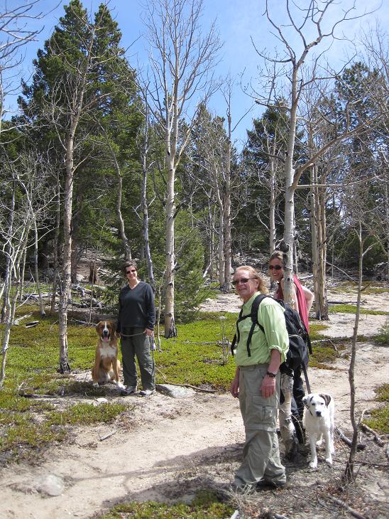 14) Golden Gate Canyon State Park, CO - April 18, 2010 - The crew headed back to Golden Gate Canyon State Park so that Jonna and Holly could check out the Ralston Roost trail that Alan and Lyle explored a few weeks ago. Another perfect Colorado hiking day: warm sunshine, blue skies, creeks coming to life with snow melt and tiny buds starting to form on the aspen trees. We skipped the Frasier meadow side trip so the hike was at 4.5 miles in length but with the 1200 ft of elevation gain from top to bottom.