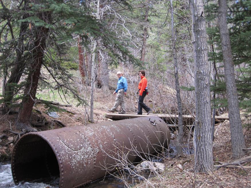 36) Bluebird loop trail, CO - November 14, 2010 - A neat hike this weekend, though just for Alan and Jonna and the rest of our hiking crowd as unavailable! We started out hiking on an old narrow gauge railroad bed from the Switzerland trail railroad, then went to the old DeLonde ranch homestead (which once housed the famous 1970s Caribou Ranch recording studio) where we found a geocache, then to a beautiful little waterfall on North Boulder creek and finally up to the abandoned Bluebird silver mine. A nice hike with the added bonus of some interesting history too. 4.8 miles in length but just a couple of hundred feet of elevation.