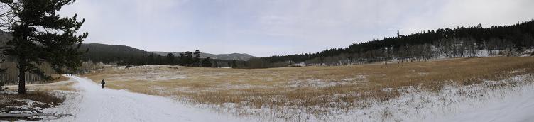3) Golden Gate Canyon State Park, CO - January 16, 2010 - After a couple of weeks without snow, the hiking crew opted to hike rather than snowshoe. We headed to head into Golden Gate Canyon State Park from Lyle's hike and head down to Frazier Meadows. Despite the great weather, the park was empty so we had the place to ourselves. A scenic five mile stroll with only about 500ft of elevation change.