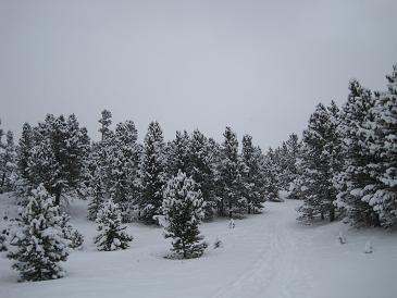 35) Wapiti trail, CO - November 7, 2010 - Our quest to hike new trails continues! This time we started at the Brainard Lake Red Rocks trialhead and hiked north on the Sourdough trail. Then did a loop around to the northwest on the Wapiti trail before returning to the Sourdough trail and back to the trailhead. This was also our first snow hike of the winter. We started in sunshine but had a storm roll in resulting in gusty wind and falling snow for the second half of the hike. 7.2 miles with just under 1,000 ft of elevation gain.