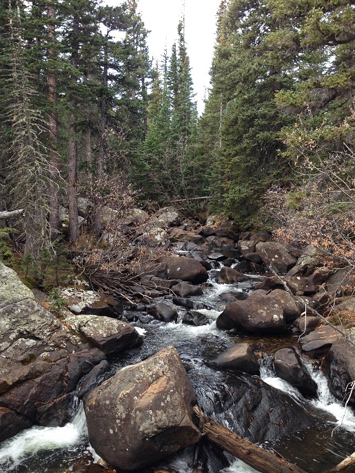 41) South St. Vrain trail #909, Brainard Lake Recreation Area, Ward, CO, October 30, 2016 - With another weekend of unseasonably warm weather combined with low numbers of visitors up in the mountains we headed to an old favorite, Brainard Lake Recreation Area, for our hike. Our friends Desiree and Gaelin joined us for a loop on the eastern edge of the park through the thick pine forest along both sides of South St. Vrain Creek. A peaceful walk far away from the rancor of the coming election. A 5.7 mile loop with a climb of 750 feet.
