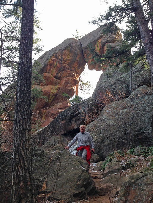 44) Royal Arch, Chautauqua Park, City of Boulder Parks and Recreation, Boulder, CO, December 4, 2016 - The temperature was just above freezing and the wind was blowing up in the high country so Lyle and Alan headed down to Boulder for this weekend's hike. It has been a few years since we last did the hike out to Royal Arch so we returned to Chautauqua Park to see the arch again. The weather was warmer in Boulder, the trail kept us out of the wind and the view was fantastic so success all around. 3.8 miles to the Arch and back with 1,400 feet of elevation gain.