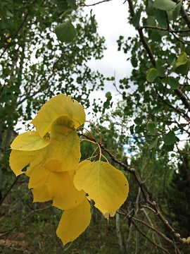 34) Como Creek trail system, Nederland, CO, September 17, 2016 - Alan was on call again so we didn't venture our far for this weekend's hike but with the leaves starting to change we had to venture into the aspen forest at Como Creek to show Aunt Gail the Fall colors. As a bonus we also explored a new side trail that gave us a chance to see an area we hadn't explored before. 2.5 miles with 300 feet of elevation gain.