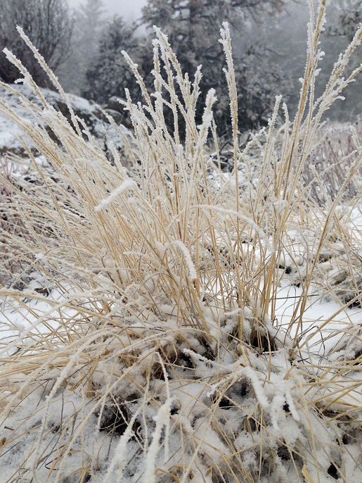 5) Bright Trail, Johnny Park trail system, Pinewood Springs, CO, February 1, 2018 - Neither snow nor rain nor heat nor gloom of night stays these hikes from the exploration of their appointed trails... or something like that. Todd, Lyle and Alan headed out into the tail end of a snow storm for a Mid-week Retiree Hiking Club outing. Todd volunteered to show Lyle and Alan some of the trails near his home so we headed up the snow-covered 4X4 roads into Johnny Park to where the road was blocked for the winter. From there we climbed up Tom's Trail into the national forest for a long, cold loop that connected to the north end of the Bright Trail. We explored a little of that trail, until the freezing wind turned us back, and then returned to the trailhead via an unnamed mountain bike trail that climbed to the top of the highest hill in the area. We hiked through snow clouds and hiked through forests of trees that were fully encased in frost. It was really spectacular...and really cold. Did I mention the cold? 9.5 miles with 2,150 feet of elevation gain.