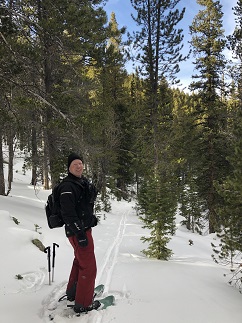 37) Sourdough & Wapiti Trails, Ward, CO, December 10, 2018 - After a week of intermittent snow, Todd and Alan got out on a Monday to play in the winter wonderland that is the front range of the Rockies. Todd wanted to check the conditions on the Sourdough trail south of Beaver Reservoir (to scout for some fat tire mountain biking) so we pulled on our hiking boots, packed up the snow shoes and headed into the mountains. The bulk of the Sourdough trail was packed down enough that we could hike okay but ever few steps we'd post-hole through the crust so it kept us on our toes. When we got to the southern connection with the Wapiti Trail we peeled off Sourdough to hike the loop back to the north. The snow was deeper and softer so we strapped on the snow shoes for a great hike through the back woods. The temperatures hovered just above freezing and we had both sunshine and overcast conditions at various times throughout the hike. The elevation gain made for a good workout but the solitude and beauty made it well worthwhile. 8 miles with 1,200 feet of elevation gain.