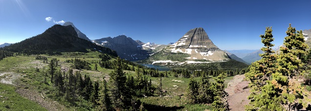 29) Hidden Lake Overlook Trail, Glacier National Park, Logan Pass, MT, July 24, 2018 - The final hike of our 2018 summer vacation was the highlight of the trip...literally. We took one of the free shuttle buses in the park up to the highest point in the park - Logan Pass. From there we hiked over the pass to the Hidden Lake overlook through an alpine meadow known as the Hanging Gardens. Along the way we saw a black bear, two herds of Big Horn Sheep, a herd of Mountain Goats, a Yellow-bellied Marmot and untold numbers of Golden-mantled Ground Squirrels and Least Chipmonks. In addition to the wildlife, the hike offered gorgeous panoramic views on both sides of Logan Pass, a thick blanket of wildflowers growing in the alpine tundra and a bird's eye view down onto Hidden Lake. I'll use that word again - Spectacular! 4 miles with 550 feet of elevation gain.