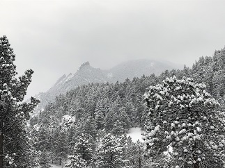 5) Flagstaff Mountain, Boulder City Open Space & Mountain Parks, Boulder, CO, March 3, 2019 - We earned our hiking stripes today! Desiree, Lyle and Alan met at Eben G. Fine park in Boulder to hike Flagstaff Mountain. An overnight spring storm dropped 6" of fresh snow on the ground and then the temperature dropped down into the single digits. It had warmed up into the low teens by the time we started hiking but the skies were darkening so more snow was on the way! We headed up the north ridge of Flagstaff but the trail gradually circles the mountain so we were on the east face about 1/3 of the way up and then all the way around on the south side by the time the trail crests the top. From the middle to the top we were the first hikers up so we were breaking trail through the fluffy white stuff. The views were sublime! The incoming snow storm gave the world a foggy feel since we were hiking in the clouds. All the trees were frosted with ice crystals and captures snow flakes. It was beautiful! However, did I mention that it was cold? Brrrr... Frozen noses, frozen fingers and (for me) a frozen beard. It was a memorable hike and probably will be the best of this year's spring training hikes! 5.6 miles with 1,700 feet of elevation gain.
