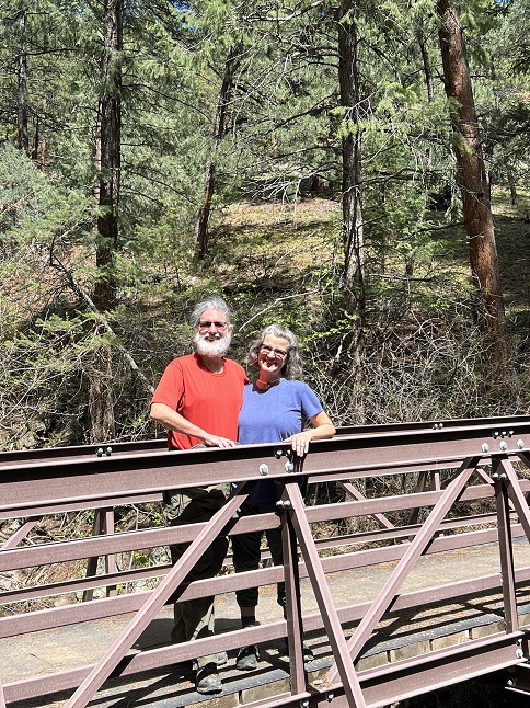 35) Owachomo Bridge, Natural Bridges National Monument, Blanding, UT, May 24, 2023 - The bridges/arches in Natural Bridges National Monument are praise worthy! Jonna and Alan took the camper out for a little tour around the Four Corners region and started out with a day of hiking in Natural Bridges NM. We opted to hike the Kachina-Owachomo Loop, starting at Kachina Bridge parking lot then hiking all of Armstrong Canyon to Owachomo Bridge. Then we took the Mesa trail "over the top" to get back to the Kachina Bridge parking lot. This was the perfect time of year to do this hike - the temperature was cooler (though still warm on the more exposed Mesa trail in the mid-day sun), the wildflowers were poppin' and there were still pools of water in the bottom of canyon (many filled with cute tadpoles!). We also hiked down to Sipapu Bridge separately before doing the loop hike so we checked all three of the natural bridges off. A beautiful day of hiking in a remote and sparsely visited place. Oh, and as a bonus - no cell signal! A 6.7 mile loop with 700 feet of elevation gain.