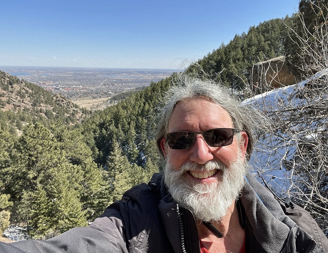 67) Green Mountain, Boulder County Open Space & Mountain Parks, Boulder, CO, August 7, 2023 - Our friend and longtime hiking companion Gaelin just got back from his European summer vacation so Jonna and Alan headed down to Boulder to join him for a hike so we could hear all about it. We did a hike we've done many times before - the Green Mountain summit starting from the top of neighboring Flagstaff Mountain. We had a perfect day for it with cool-ish summer temperature and a clear sky. The trail was relatively empty so we only saw perhaps a dozen other people. Can't beat a beautiful day and an empty trail! We went up Ranger trail to the Greenman Connector. Then used that to hop over to Greenman trail which we took all the way to the top. After enjoying the views from the summit we descended via the West Ridge trail to the top of Ranger and then hiked all the way back to the trailhead on that. A great time catching up with Gaelin and a nice mountain hike to boot! A 4 mile loop with 1,500 feet of elevation gain.