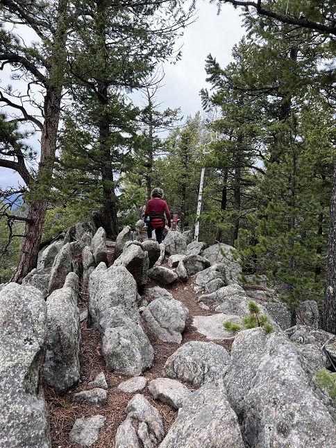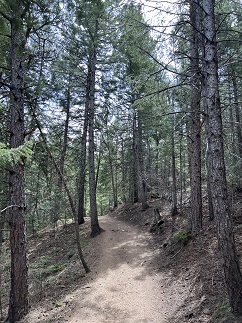 78) Sourdough Trail, Roosevelt National Forest, Nederland, CO, September 6, 2023 - After the last few hike have been big and pretty spectacular hikes, today we fit in visit to one of the run-of-the-mill local trails - the Sourdough trail just a few miles north of our house. This trail lacks the stunning views, incredible landscape and iconic Rocky Mountain scenery that I've been sharing from our recent hikes. It is instead a pleasant trail that winds through the pine forest that blankets much of the Front Range. No "Oh Wow!" moments but a nice place to stretch our legs and get in some more mileage as we trail for our upcoming hiking trip to Patagonia. Even the highlight was pretty mundane - we stopped to watch a fluffy young squirrel dig the seeds out of a pine cone. A 5 mile out-and-back hike wiht 800 feet of elevation gain.