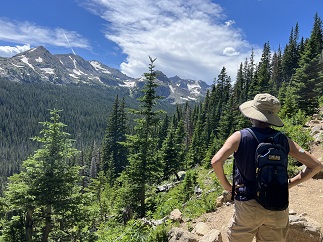 74) Bear Peak, Boulder Open Space & Mountain Parks, Boulder, CO, August 24, 2023 - With my cousins visiting from Florida I really wanted to bring cousin Sam out for a big hike so he could experience the Colorado mountains. While bringing a fit young Marine out for a strenuous hike may not have been my wisest thought the fact that he is such a polite and generous young man saved me from the humiliation that could have occured. Instead, we had a great hike up Bear Canyon trail without Sam complaining once about how much I was slowing him down. The truth only became apparent on the final ascent to the top of Bear Peak when I finally convinced him to go ahead and he zoomed up despite the trail climbing the last 750 feet in just 1/3 of a mile. Then he took off and climbed the nearby South Boulder Peak as well while I caught my breath sitting atop Bear Peak. He wins the hiking Gold Star! We did get to spend some time enjoying the panoramic views - both of the Continental Divide to the west and over Boulder to the east - before heading back down. We did the super steep descent down the Fern Canyon trail and looped back to the NCAR trailhead via Mesa and NCAR Trails. I think we both enjoyed our time in the mountains and I was thrilled to get to share these scenic vistas with my cousin Sam! A long 9 mile loop with 2,700 feet of elevation gain.