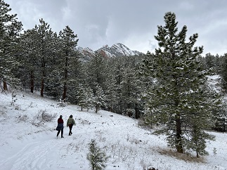 1) Mud Lake, Boulder County Parks & Open Space, Nederland, CO, January 8, 2023 - Our first hike of the new year was a short one but we shared an afternoon stroll around the Mud Lake Open Space with our friends Kristin and Steve so I'm counting it as a "hike". We met up mid-day when it was relatively warm for an early January Sunday and walked a couple of different trails around Mud Lake. It was a little breezy but most of the hike was in the trees where the mild gusts didn't bother us. It was a nice chance to enjoy the great outdoors mid-winter and to catch up on our various holiday experiences. A meandering 1.5 mile loop with around 75 feet of elevation gain.