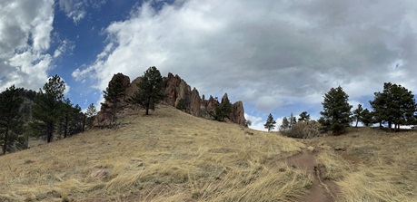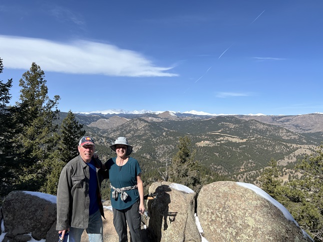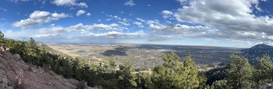 64) Chapman Drive, City of Boulder Open Space and Mountain Parks, Boulder, CO, December 30, 2024 - Our last hike of the year wasn't a big one but it shows we are ending the year healthy enough to still get out to enjoy the beautiful outdoors. Alan's broken ribs and Jonna's broken foot are both on the mend. We were going to hike down in Boulder but it was crazy windy so we drove a little ways back up the canyon to hike the Chapman Drive trail. It is protected from the wind by the foothills but still open enough to get some mid-day sun. We climbed halfway up Flagstaff mountain and were thankful to find the trail dry and clear. At the halfway point we turned back not wanting to stress Jonna's foot too much on our first hike in the three weeks since she injured it. Nothing fancy but we were glad to end the year with another hike. A 2.5 mile out-and-back with 550 feet of elevation gain.