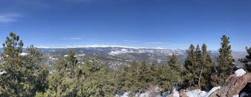 14) Flagstaff Mountain, Boulder City Open Space & Mountain Parks, Boulder, CO, March 10, 2024 - Thanks to great weather, a couple of days after the latest snow storm rolled through, I was able to check off Spring Training Hike #2 today. Jonna and Todd joined me for a morning hike up Flagstaff Mountain, starting from Eben G. Fine park in Boulder. My usual route is to climb up via Viewpoint trail to Panorama Point and then picking up the Flagstaff trail all the way up to the summit. Once up top, the Rangeview and Ute trails provide a loop before reversing the route up to descend. The trail up to Panorama Point was frozen due to sub-32 night time temperatures but a warm sun quickly pushed the air temperature up into the 60s which meant the snow-covered trail higher up the mountain was slushy as the snow and ice melted. Rangeview trail offered a beautiful panorama off to the west and Panorama Point gave an equally lovely view out over Boulder on our way back down. The trail at the bottom of the mountain that was frozen on the way up was turning into a sticky, muddy mess as we returned to the trailhead so we got back to the car with appropriately dirty boots! I think we all had a fun time swapping stories and all enjoyed the hike. A 6.5 mile up and back down trail with 1,800 feet of elevation gain.