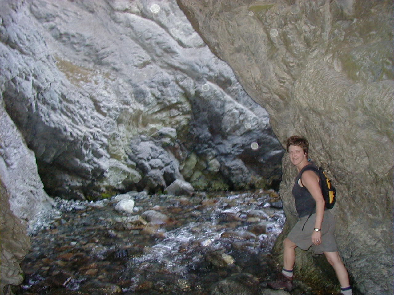 4) Jonna hiking down the creek at Zapata Falls. The 30' high water fall is in a cave so we had to wade up the creek bed to a chimney in the cave to see the fall.
