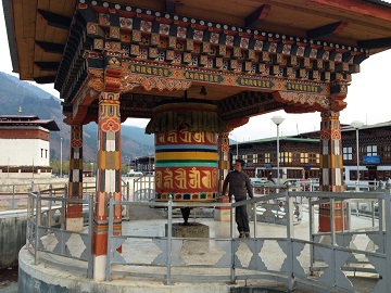 86) Jonna and Alan walked into town from our hotel to look around and in the middle of town we found this gigantic prayer wheel.