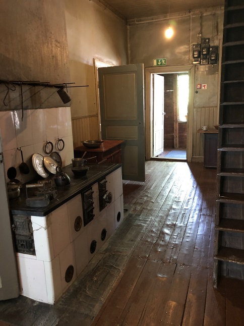 106) The day started early - around midnight actually. Pyynikki park is beautiful with green grass, tall trees, a peaceful lake shore beach area, an outdoor theater and lots of parking lots. However, it turns out that one of those parking lots is where the testosterone fueled Finns go in their fast cars to do burnouts and drifting in the middle of the night. Fortunately, we were out of earshot of said parking lot but the road in went right past where we were parked so we heard them going in and out throughout the night. Not obnoxious but invasive enough at times to wake us up even with earplugs in. The "artwork" (in the medium of tire rubber on asphalt) we saw this morning was expressive, expansive and evoked definite emotions. Once we got moving we unloaded the bicycles and pedaled off to see Tampere. Shock and surprise, our first stop was *not* an art museum!?! Instead, we started our day with the Amuri Worker Housing Museum. This place is outstanding! Starting in the mid-1800s wooden, single story shared housing was built to house workers in the rapidly industrializing city. These residential blocks were residences for the lower classes for 100 years until being torn down in the 1970s. One block was preserved and the buildings there have been restored to represent each decade over that century with stories about the people that lived in the rooms, the story of the industrial boom and bust, the two world wars, independence and the civil war, the depression and much more. I was awed and wish more places could show and tell their stories in such a compelling way.