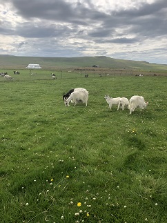 57) Háafell Goat Farm, Iceland, August 8, 2021 - We started back out of the river valley on a dirt road and surprised Jonna with a visit to the Háafell Goat Farm where we got to pet some kid cashmere goats and an orphaned lamb. Getting to pet some animals is a great way to reduce stress while traveling so between the hot spring and the goats we should be about as calm as possible! (Game of Thrones fans: these goats were used in the TV series and one of their star goats was virtually eaten by one of the dragons.) We wanted to visit Eiríksstaðir, which is a nearby museum dedicated to the viking Erik the Red and his son Leif Eriksson, but it was too late in the day so we pointed the car towards Reykjavik and headed south.