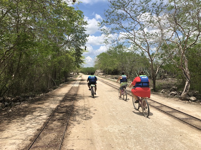 11) Santa Barbara cenotes, Cuzama, Yucatan, Mexico, May 17, 2021 - Another of the unique features of the Yucatan are the cenotes. These are natural waterfilled caves formed in the limestone bedrock by underground springs. These cenotes dot the penisula and vary from fully underground caves to partially open caves with holes in the ceiling to fully collapsed caves which are now wide open pits. Three cenotes (Cascabel, Chaksikin and Xoch'), one of each of the types described, are within a well developed tourist attraction called Santa Barbara where guests can either bicycle or ride a horse drawn cart on a one mile loop that visits all three.