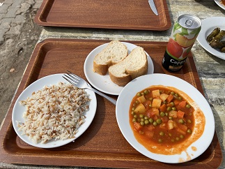 9) Kalkan, Turkey, February 24, 2022 - Among the many things we enjoyed during our visit was the cost of living in Turkey. Food was very cheap. This lunch - a veggie stew, rice, bread and a soda - was the equivalent of $3 US.