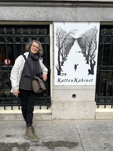 4) Katten Kabinet Musuem, Amsterdam, Netherlands, February 16 - Here Jonna poses next to the sign for the Katten Kabinet. Right across the street was one of the many scenic canals that encircle the old city center of Amsterdam and the Katten Kabinet is located in one of the historic canal houses.