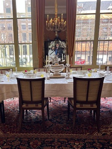 21) Museum Van Loon, Amsterdam, Netherlands, February 18 - Next we walked a "U" to cross a bridge in order to end up directly across the canal in order to visit the Van Loon house museum. This is a large home which has housed the rich Van Loon family since the heyday of Dutch opulence in the late 1600s through to today. Imagine massive crystal chandeliers, antique mahogany furniture, giant portraits by noted artists, a separate carriage house for pampered horses and a downstairs servant's quarter area that housed 15 "helpers". I gotta say all that wealth and luxury rang pretty f'ing hollow after having just spent 2 hours seeing the racial inequities brought by the Dutch and English to South Africa during the time period the Van Loons were living the highlife. Context is everything...
