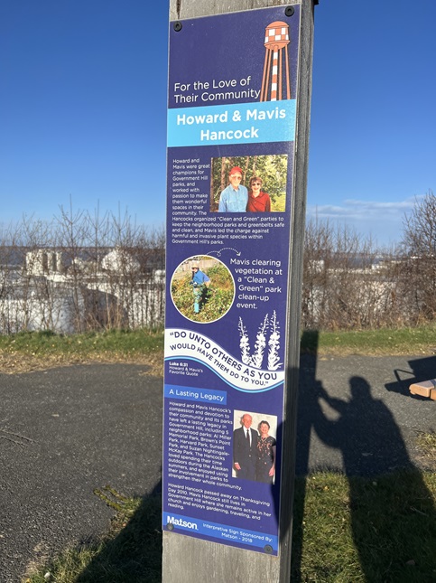 4) Anchorage, Alaska, October 22, 2024 - One neat thing we got to see was this sign in a park across the street from Mavis' house. She and her late husband Howard spent a couple of decades volunteering with the Anchorage city park system maintaining parks around the city. In return for their years of service the city put up this sign acknowleding all their work. It was touching to see them recognized in this way.