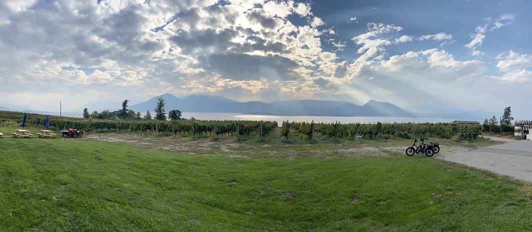 21) Deep Roots Winery, Penticton, BC, September 27, 2025 - The panoramaic view with the sun starting to set in the west was definitely worth the cost of a flight of wine tasters.