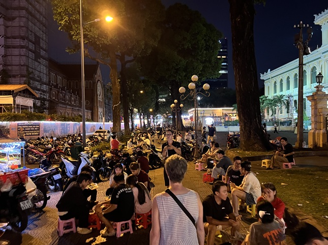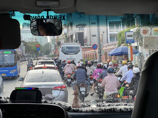 147) Sài Gòn (aka Ho Chi Minh City), Vietnam, February 26, 2025 - You get a sense of déjà vu reading the first bit of this write up. This is because once again I had a remarkably crappy sleepless night on the overnight train, this time the train from Quy Nhơn to Ho Chi Minh City. The motion of the train and the myriad noises that come with lots of people in a confined space didn’t bother me but the rock hard mattress was a deal breaker. I just could not get comfortable with my hips, my shoulders and my elbows all hurting. I think I nodded off for a little between 1 and 4am but for most of the night I was listening to podcasts. On the plus side, I am now caught up on two weeks of downloaded podcasts... our train rolled into Ho Chi Minh station at 6:15am and we all zombie walked from the platform to the bus. The drive from the train station to the hotel was our first glimpse of Ho Chi Minh City and wow. This is a frenetic place. 13 million people live in this city and even at 6:30am the traffic was astounding. Literally, hundreds of scooters back up immediately whenever a light turns red. The roads are just a river of scooters with a few cars, trucks and buses acting as log jams. The other thing that was immediately obvious is that Saigon is hot, hot, hot. I didn’t check the temperature on my weather app but my sweat-o-meter said it was mid-80s with high 70s of humidity. At 6:30 in the morning. I we were thinking back wistfully on the chilly, rainy days we had been experiencing in the north.