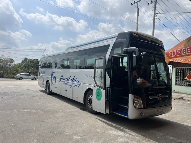188) National Highway 1, Soeng Village, Cambodia, March 2, 2025 - We drove for about two hours and then the bus stopped at a truck stop so we could use the restroom and buy snacks. (The bus service provided a croissant and a bottle of water in the morning and a cold can of coffee latte in the afternoon.) The rest stop provided me a chance to look at Cambodian snacks and that was also different. Fewer packaged/processed goods and more natural or baked goods - cashews, dried fruits and homemade crackers seemed to dominate. We were back on the bus for another two hours after then break which put us into Phnom Penh around 4pm. I checked my weather app as we pulled into town - 91 degrees F and 91% humidity. Ooof! The bus dropped us off at the central bus terminal where we immediately hopped on a smaller tourist bus for the trip to our hotel.