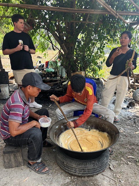215) ពូមីងធ្វើឆ្នាំង (Pottery House), Khum Srae Thmei, Cambodia, March 4, 2025 - p Her husband and son operate a small sugar palm plantation which they showed how to boil palm juice down to taffy-like sugar.