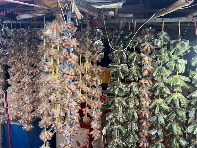 219) Tuk-Tuk Tour, Battambang Central Market, Battambang, Cambodia, March 4, 2025 - In the fish market the non-vegetarians tried fermented fish balls with chili. These are apparently a very popular snack in Battabang and the sheer quantity on display would back up that claim..