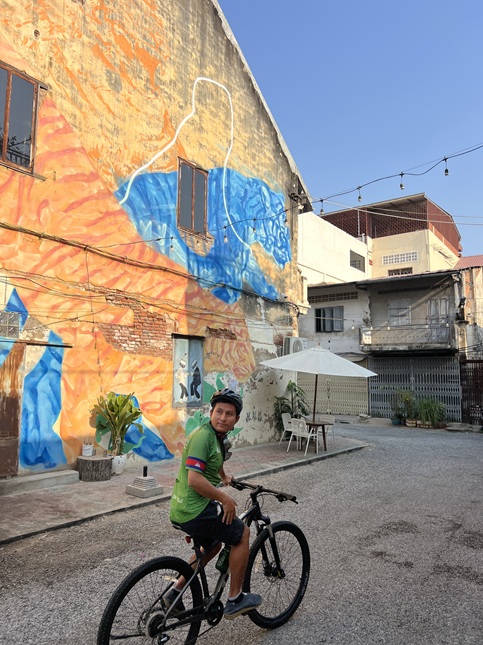 228) Bicycle Tour, Battambang, Cambodia, March 5, 2025 - Wow, was Cambodia hot. We got a big dose of that on this day. The morning started with a good news/bad news thing. The good news is that our hotel room had an air conditioner which allowed us to spend the night blissfully unaware to the temperature outside. On the not so good side of things after a few nights of comfy beds the bed in this hotel was again a plank and, as a result, I didn’t sleep well. So I was up early at around 6:30am. We went down to breakfast at 7am and found a nice spread of food. Knowing we would have a busy morning I did my best to hydrate up with fruit juice, caffeine up with tea and protein up with eggs. At 8am our tour group met up in the lobby for a 15 minute walk through downtown Battambang to Solsabike Tours - a bicycle tour company with a strong social activism ethos. The group that started the group did so with the goals of showing tourists a unique view of Cambodia but also providing financial support to their local communities. Unlike our trip into the Mekong in this case the financial part is set ahead of time as the booking cost of the tour (which, I realize, can be problematic if a) companies just use the social welfare as a marketing angle or b) as a middleman they don’t equitably share the money in the way direct selling would benefit the local people.) Anyway, as a tour participant it was very relaxing to learn about the unique skills of the locals without having to worry about a sales pitch afterwards. To me this bicycle tour was amazing and probably my favorite activity of this trip. We did an 11 mile loop starting in Battambang but quickly cycling out into the countryside.