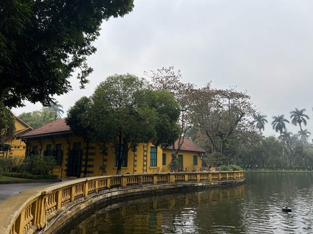 24) Ao cá Bác Hồ (Uncle Hồ' Fish Pond), Ho Chi Minh Mausoleum Complex, Hanoi, Vietnam, February 13, 2025 - For our second full day of exploring Hanoi we really hit the ground running… or at least walking. I am guessing we walked at least 8 miles over the course of the day. It all started with us waking up at 7am in order to grab a quick breakfast at the hotel and then going down to the lobby at 8am to meet up once again with Tony, our guide from last night’s food tour. He offered us taking a ride share north to the Ho Chi Minh Complex but we said we’d rather walk to see more of the city. As a result we made a snaking 2.5 mile stroll through a couple of different neighborhoods seeing various International Embassies, large commercial towers full of Vietnamese companies, fancy neighborhoods and blocky government buildings. Just before we got to the huge West Lake we hit the Ho Chi Minh Complex. This is a giant park centered on the mausoleum of Ho Chi Minh – a massive dark gray granite shrine to Ho Chi Minh with his embalmed body on display inside. Within Vietnam this site is treated with religious veneration with thousands of people streaming through daily to respectfully file past the glass cabinet that contains the corpse. Hundreds of soldiers in white (the color associated with death and mourning in Vietnamese culture) dress uniforms enforcing strict rules of respectful behavior – no hats, no sun glasses, no cameras, no talking, single file line, hands down at your side, etc. After we exited I had a lot of thoughts about the cult of personality that is so easily built around strong nationalistic leaders and the blinding power that comes with that near sacred veneration of political figures. But the mausoleum isn’t the only piece of Uncle Ho that is worshipped in this complex. This area was developed by the French at the end of the 1800s and into the early 20th Century as the center of their Colonial government. After the French were defeated in 1954 and the country was split into North and South the Communists took over the buildings as party headquarters. So Ho Chi Minh had an office in the buildings which is now preserved and available to see.
