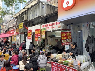 9) P. Lý Thường Kiệt, Hanoi, Vietnam, February 12, 2025 - From there we headed back to the hotel to figure out lunch. Food is ever-present in Hanoi and shockingly inexpensive. Every street is covered with street vendors who set up carts on the sidewalk and spread out little stools and crates for tables and chairs. A typical meal might cost the equivalent of $1 or $2 and is cooked to order. Nearly all ice is made by one of two government run industries, left over from French breweries that were set up during the colonial era, and is safe for delicate western stomachs. This meant that Vietnamese Iced Coffee (dark roast coffee, sweetened condensed milk and ice) was on the menu to keep jet-lagged bodies functioning!